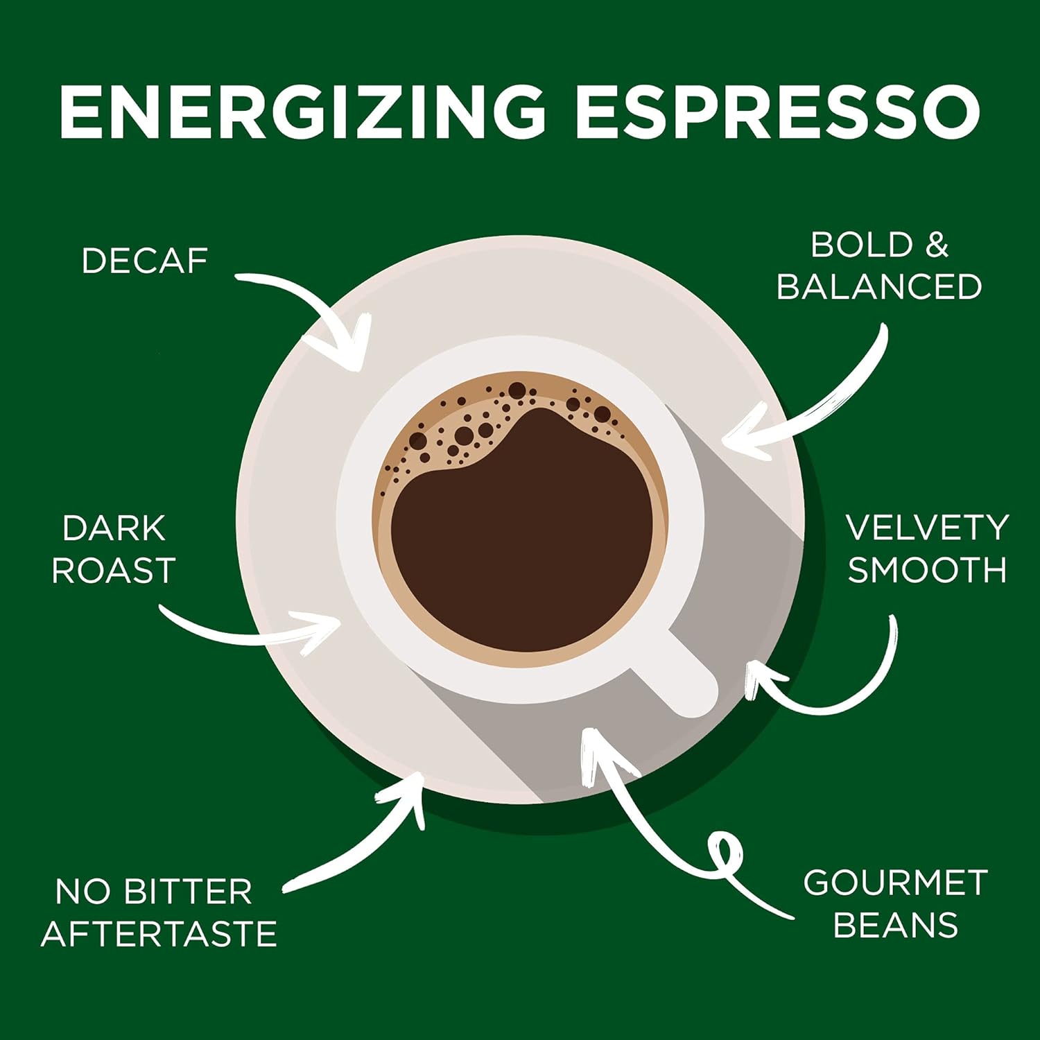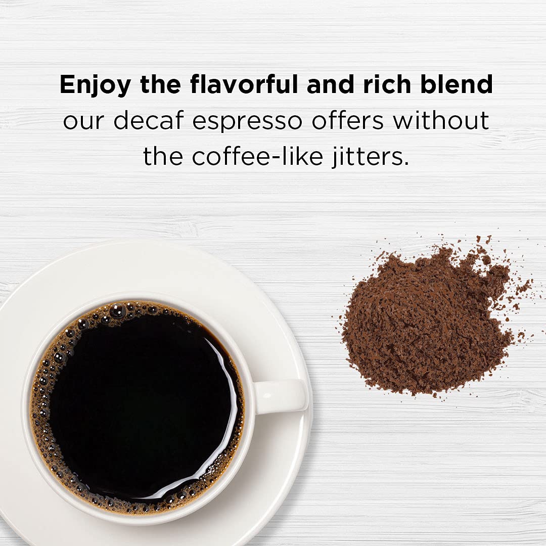 A bold and creamy flavor with no caffeine. Crafted from Arabica and Robusta beans, it’s expertly dark roasted and decaffeinated using a chemical-free process, resulting in a smooth, balanced espresso experience.