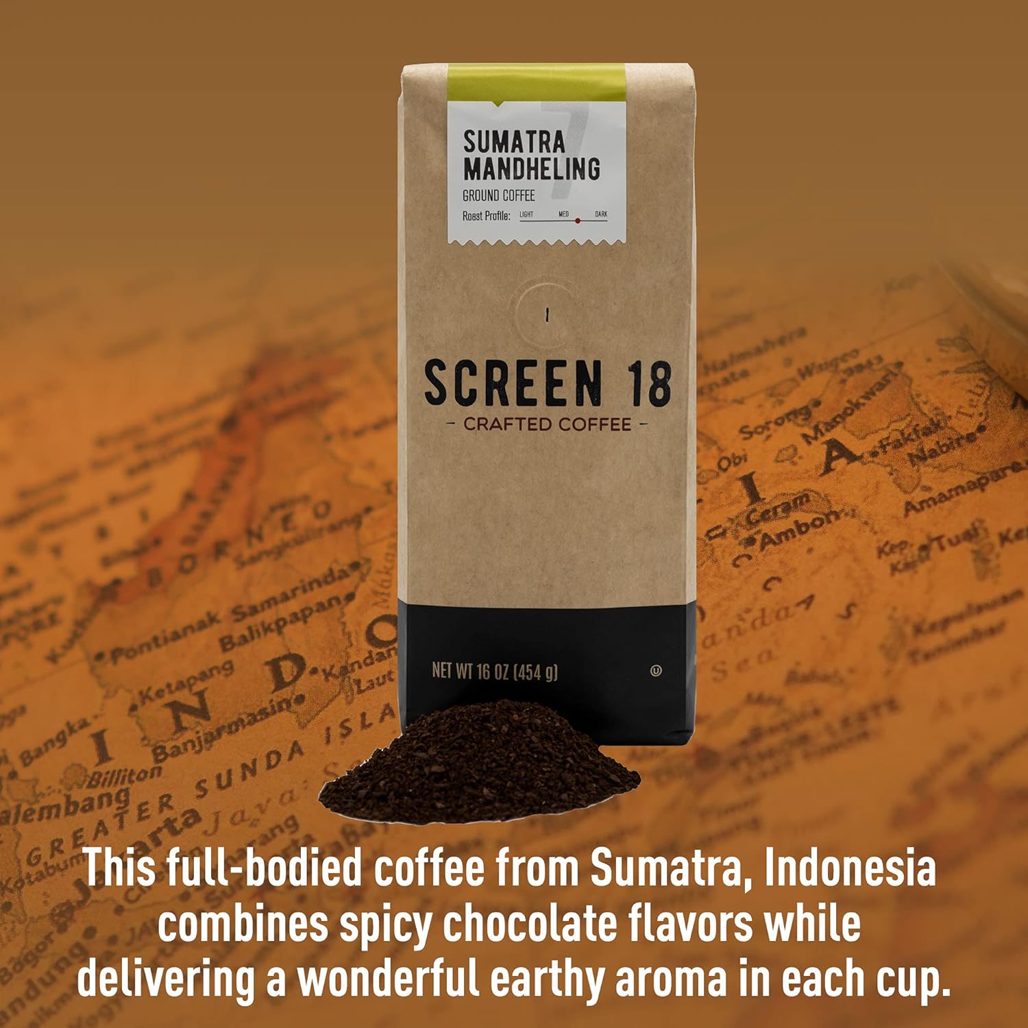 This deep, full-bodied coffee has a wonderful earthy aroma. The herbal, chocolate, and spicy flavors, combined with the low acidity will appeal to casual drinkers and connoisseurs alike.